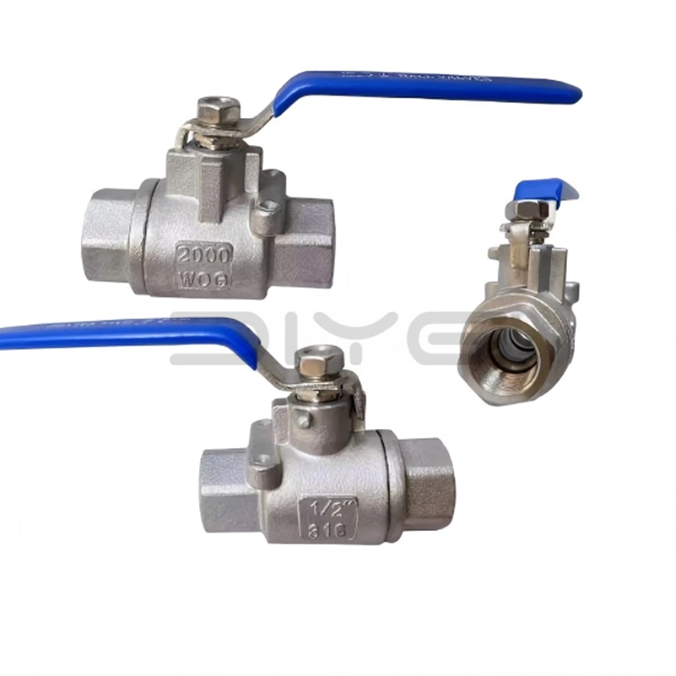 Сферичният кран с резба DIYE VALVE 2PC 2000WOG, масово произвеждан, е универсален промишлен клас контролен вентил за течности с отлична устойчивост на налягане. Подходящ за приложения в тръбопроводи със средно и високо налягане, той се използва широко в промишлени области, работещи с различни конвенционални среди като вода, нефт и газ, осигурявайки ефективни, надеждни и удобни решения за управление на включване/изключване на течности за проекти по целия свят. Целият производствен процес на този клапан е завършен вътрешно, от избора на суровини до проверката на готовия продукт, осигурявайки постоянно и стабилно качество на продукта.
